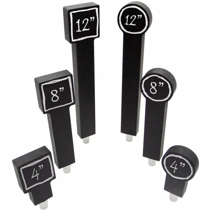 These wooden tap handles are a perfect fit if you’re looking for something to highlight different beverages on tap with a personal touch! Constructed from durable, high-quality birch wood, these tap handles feature a chalkboard finish on all sides for easy alterations at a moment’s notice. This makes them a great purchase or gift for a home bar enthusiast, or for adding a personal style and flair to your bar, restaurant, or club. They’re available in 4″, 8″, and 12″ heights and your choice of round or square top.