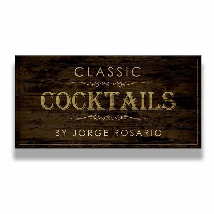 The Murphy WalBAR™ is custom built in our USA based woodshop. It has been meticulously designed in favor of the home bar enthusiast. Measuring 18″H x 36″W x 7.5″D it securely attaches to your wall space with a French Cleat (included). When not in use, the bar can remain latched and closed to showcase a customizable design such as this Classic Cocktails theme design. All you need to do is type in your text with your personal information and you have yourself this gorgeous signature piece. The unprinted sides, top, bottom and inside are finished with a beautiful dark walnut stain.