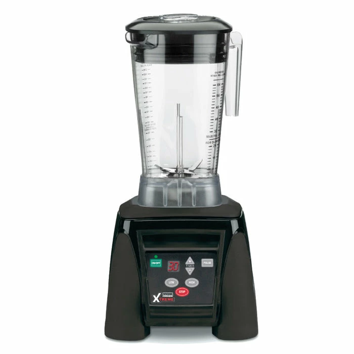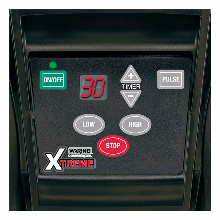 The Waring Commercial MX1100XTX Hi-Power Electronic Keypad Blender is ideal for getting smooth and consistent drinks with every use. This heavy-duty, 3.5 HP blender teams up with The Raptorยฎ jar and blade assembly for maximum power and efficiency. Features an easy-to-clean, electronic-membrane keypad with HIGH, LOW, OFF and PULSE functions and a 30-second electronic countdown timer. Perfect for a busy bar, smoothie place, or coffee shop.